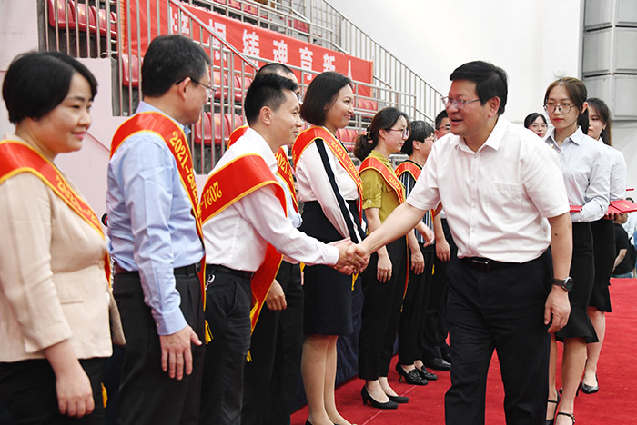 顾家山强调,全体教职工要紧扣迎接党的二十大这一主线,深入学习贯彻习近平总书记关于教育的重要论述和系列重要讲话精神,大力弘扬尊师重教传统,强化榜样引领感召作用,挖掘宣传教师模范典型,深入开展宣传庆祝活动,让广大教师成为教师节的主角,不断提升教师获得感、荣誉感、幸福感。他同时激励全校广大教师和教育工作者要坚定理想信念,坚守初心使命;要厚植教育情怀,潜心教书育人;要坚持创新引领,敢于攻坚克难;要涵养高尚师德,争做先进模范。