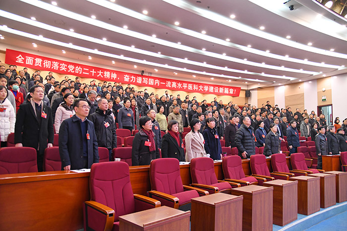 大会号召,全校上下要更加紧密地团结在以习近平同志为核心的党中央周围,全面贯彻党中央和省委决策部署,把实干之力、奋斗之志、奉献之为融入国内一流高水平医科大学建设宏伟蓝图,在波澜壮阔的新征程上奏响振奋人心的时代强音、书写不负历史的时代答卷。
