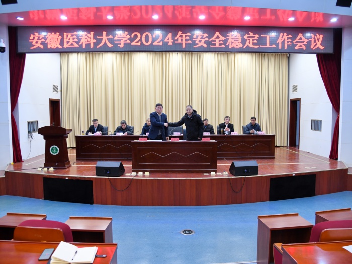1月16日上午,学校召开安全稳定工作会议,部署2024年安全稳定工作。校党委书记顾家山主持会议作总结讲话,并与学生处、实验教学中心、药学院、附属口腔医院等四个单位负责人签订了安全稳定责任书。校党委副书记谢瑞瑾,校党委常委、副校长余永强、肖圣龙、吕雄文、徐朝阳,学术副校长张智出席会议。肖圣龙作2023年度安全稳定工作报告。
