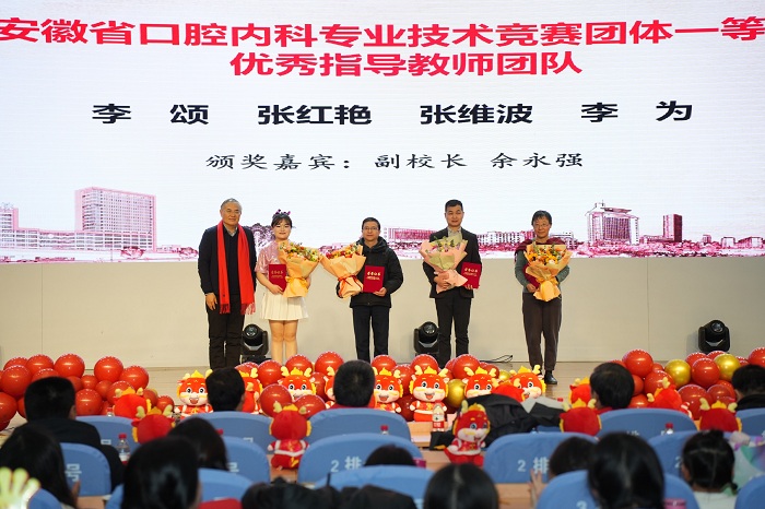 1月27日下午,口腔医学院(附属口腔医院)2023年度总结表彰暨2024年迎新春联欢会在第一附属医院内科医技楼4楼会议室举行。副校长余永强出席活动,并为该院安徽省口腔内科专业技术竞赛获奖团队、以及2023年度学院(医院)“科教优胜奖”“医疗优胜奖”科室颁奖。