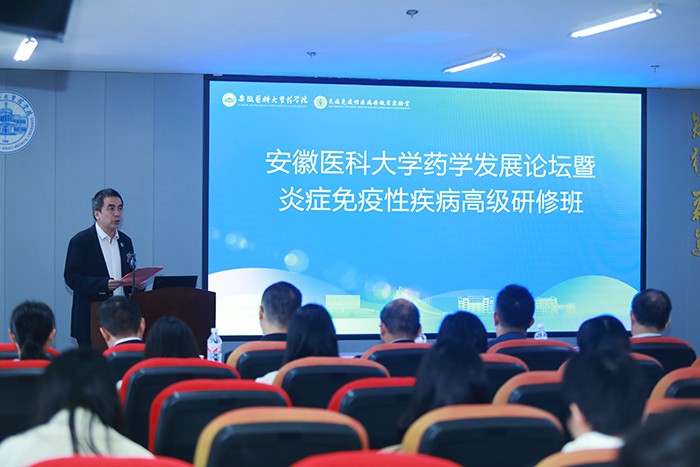 本次药学发展论坛和炎症免疫性疾病高级研修班,是由安徽省人社厅立项,我校药学院和炎症免疫性疾病安徽省实验室承办的省级继续教育培训班。培训班邀请中国科学技术大学、暨南大学、中科院上海药物研究所等国内外知名学校、研究所的资深专家学者,就炎症免疫性疾病的发病机制、医院药学和临床药学相关工作进行深入探讨;同时邀请省中医药管理局、省医疗保障局、省药品监督管理局等省级行政部门的管理专家,对长三角一体化下医药产业的现状及相关政策和当前药学科研的前沿问题、挑战与机遇进行交流。