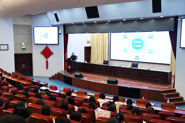 3月26日,校长翁建平以“从教育大国迈向教育强国”为主题,在图书馆第一学术报告厅为本科生讲授“形势与政策”课。